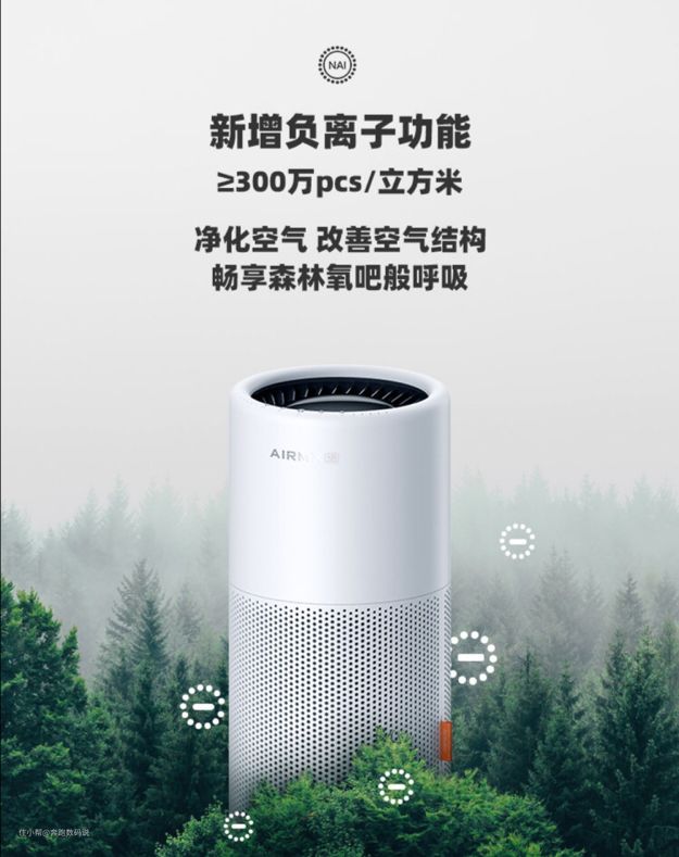 其次,AIRMX秒新作为冷蒸发式加湿器的天花板,每一款产品都主打无雾无污染加湿,完全不会产生任何有害物质。这一次秒新A3S加湿器更是增加了高浓度的负离子发射器。负离子能激活空气中的氧分子,使其更加活跃且更容易被人体吸收。并且,人在负氧离子丰富的环境中会感到呼吸更加顺畅,尤其是对于上了年纪的老人、呼吸道疾病患者和心肺疾病患者都有一定的好处。