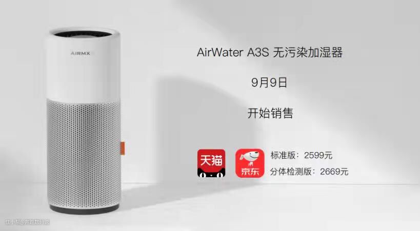 诚然,AIRMX秒新的每一代加湿器产品都在带领着行业往更高端的方向发展,促成了加湿器行业的转型升级,引起了同行产品的反思和改变。但作为行业内的标杆,AIRMX秒新也承载着很多的压力,这一次的A3S可以说是完美解决了目前用户对加湿器的所有需求也符合用户们对理想加湿器的憧憬,恰巧说明了AIRMX秒新不惧压力不畏困难,旨在为我们的健康而战,树立了很好的品牌形象。AIRMX秒新A3S目前已在京东、天猫开启预售,9月9日正式开售。标准版2599元;分体检测版,价格是2669元,大家记得调好闹钟哦!