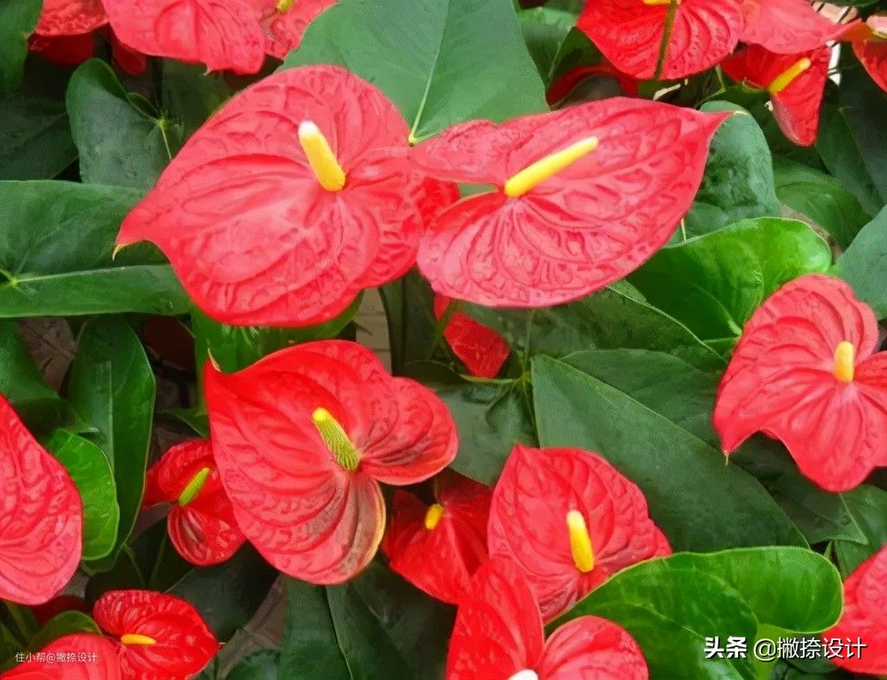室内又称安祖花、火烈鸟花等,只有与木质家具、墙纸、布艺、餐具和绿色植物的亲和力,一幅与户外田园生活媲美的宜人画卷必不可少的元素。