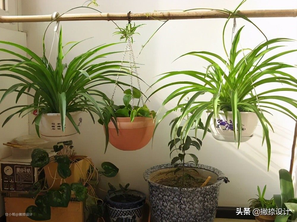 它的叶子又细又软,小的植物从叶腋长出来。它们从盆底垂到盆底,像花一样散开,它们一年四季常青,吊兰是植物中“除甲醛之王”。