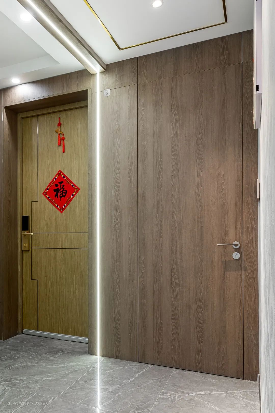 ▲图为亿陶公司设计装修的一套松江虹桥悦府案例,该业主家采用的即加厚木质门设计,利用木材自身密度高、重量沉、门板厚的特点,满足了业主的隔音降噪需求,而且该门经久耐用且美观大方。