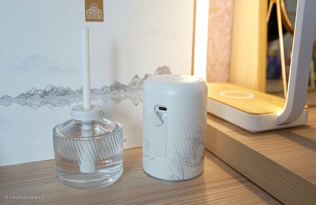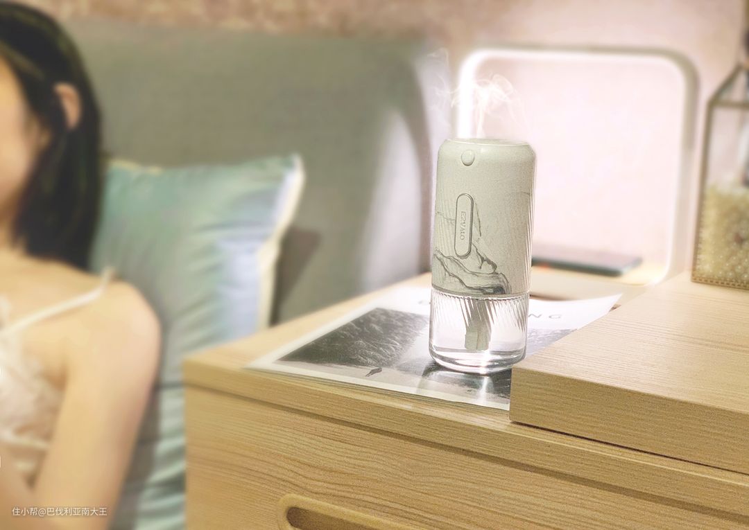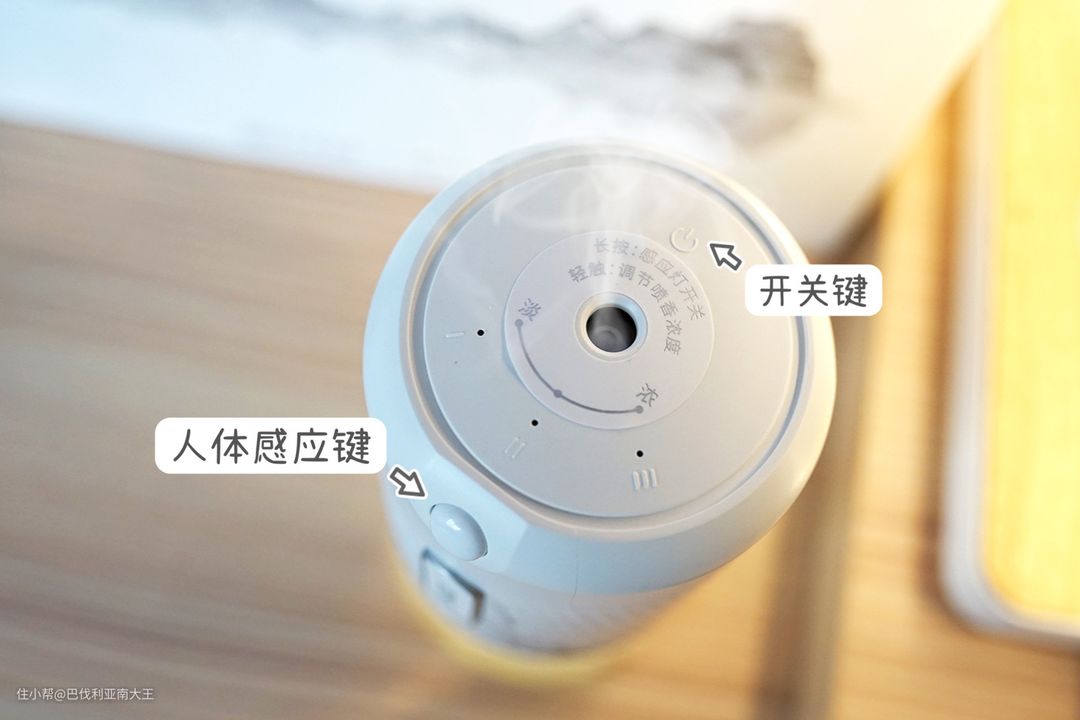 精油以雾化式自然扩散,运行时超级静音,几乎感觉不到。而且它还能自动感应光源,夜间关灯状态下会停止喷香,当我们起夜上厕所时,120度区域内靠近它会自动亮起,化身小夜灯,超级棒!