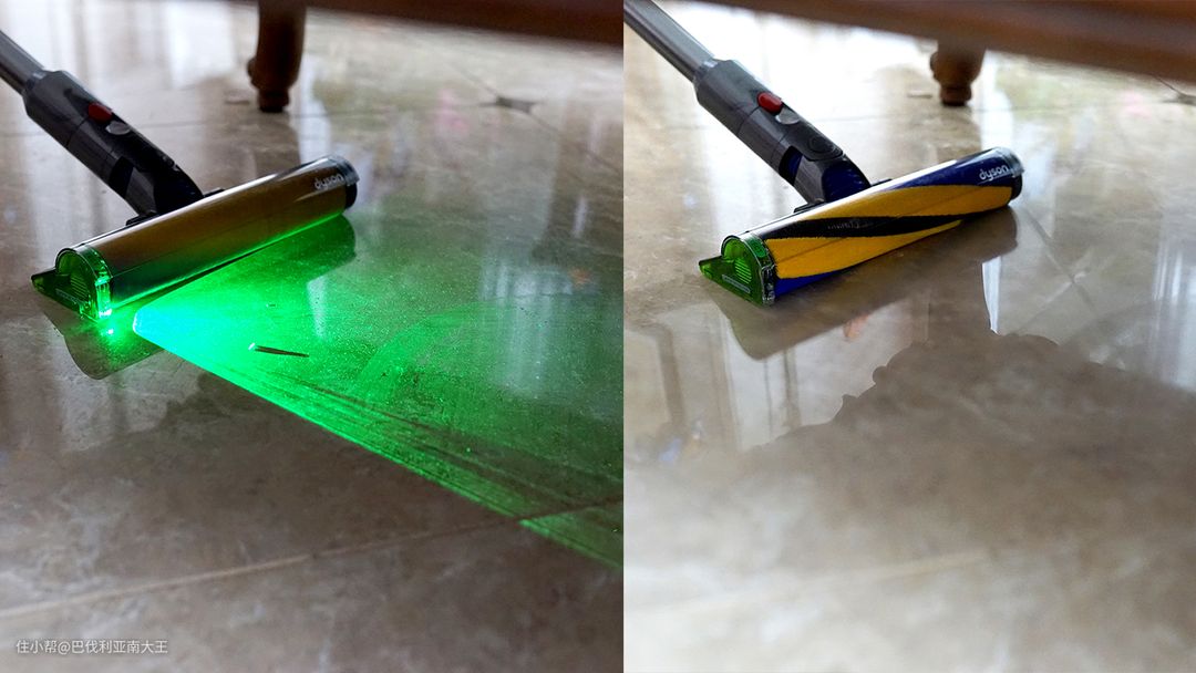 我目前用的最顺手的吸尘器当属戴森V12,满满的黑科技!首先带绿色激光功能,再微小的灰尘都能肉眼可见的去清洁了!在我个人理解,就是终于可以和灰尘知己知彼,不再是敌暗我明!这点比起传统吸尘器仅能照亮地面的LED灯珠,可是质的飞跃。