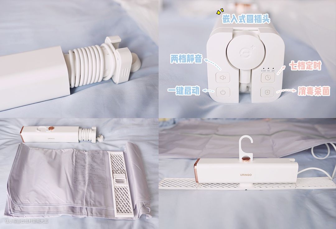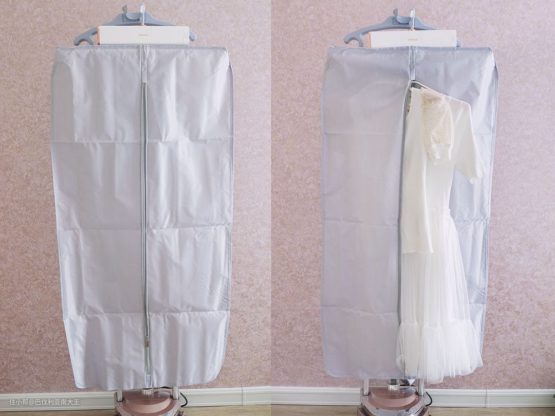 搭配立体式布罩,可以3-5件衣服一起烘,长款连衣裙也都能放进去~这种尤其适合外出旅行时带着,我一般睡前定好时间,隔着门运行完全不影响睡眠,第二天早晨起床就有干爽的新衣服穿啦~