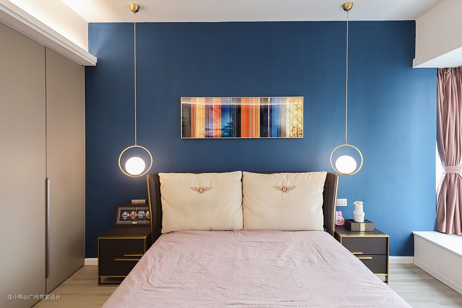 这款圆形吊线灯是安装在主卧的床头两边,代替了传统床头台灯的作用,造型非常有创意,而且因为是垂吊式的,就不会占用床头柜的面积。不过对于有些人来说,这种吊灯安装在床头边,可能会有个小缺点:就是一个不注意,探身拿东西的时候可能会磕到头。如果害怕这种隐患的朋友,就不太建议购买啦。