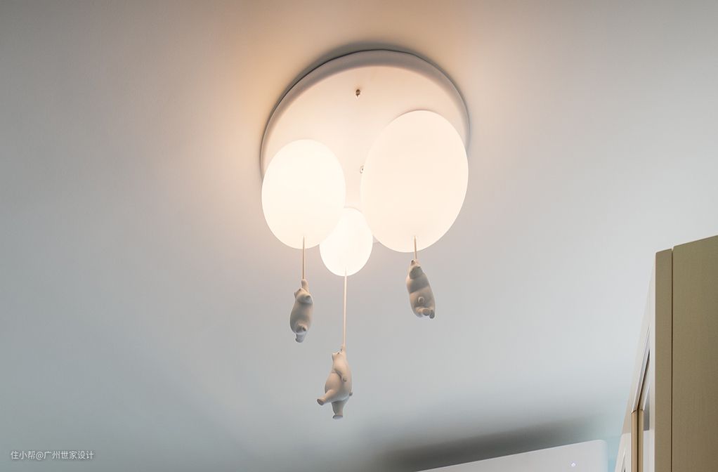 介绍了那么多客餐厅使用的吊灯,现在来介绍一款适合安装在儿童房的吊灯。儿童房是孩子的独立乐园,所有的装饰应该尽可能充满童趣,连吊灯也不例外。这款小熊气球吸顶灯真的非常可爱,每只小熊的姿势都不相同,从下往上望去,小熊就像抓着气球飞向远方,就好像小朋友的梦想也一起飘向远方。