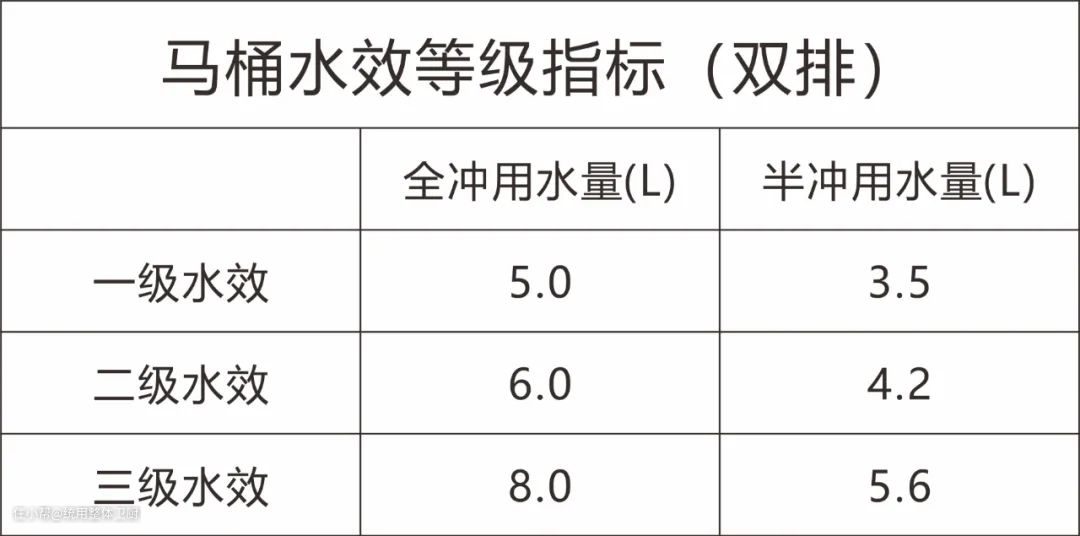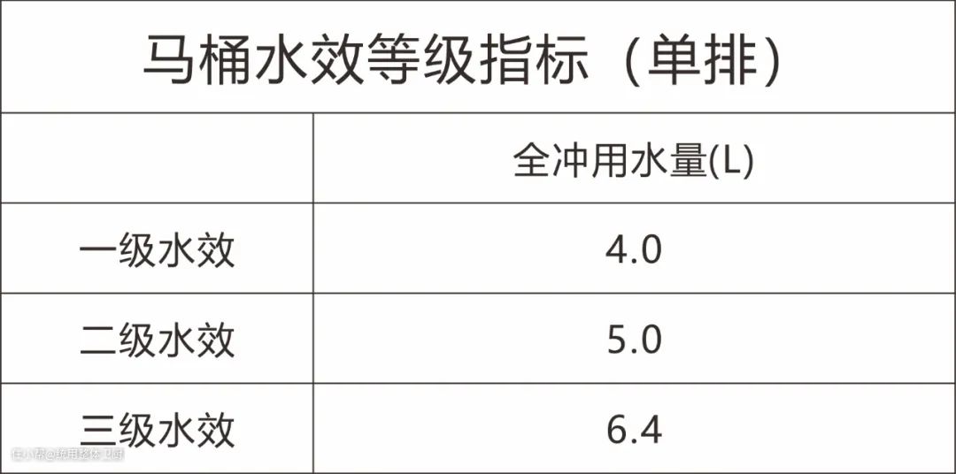 自2018年8月1日起《坐便器水效标识实施规则》规定坐便器产品需贴水效标识才可进入市场销售,消费者购买马桶时只要看水效标识就能知道冲水量多少了。