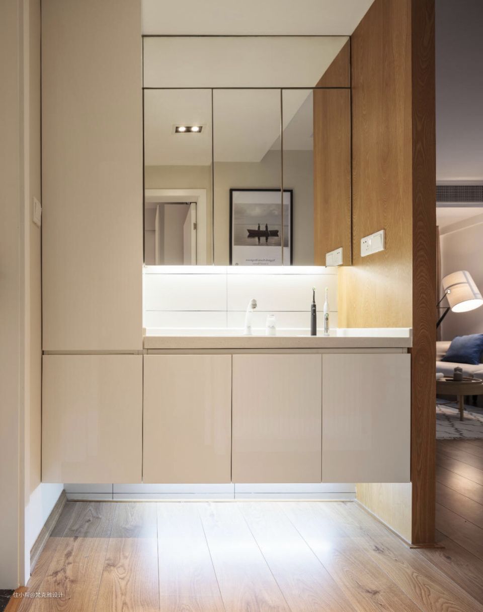 不论是大户型还是小户型,糖主化妆还是不化妆,总会有瓶瓶罐罐,日常的洗漱牙刷牙膏总会有的,设计储物柜拿取又不方便,最方便的还是顺手取物的镜柜。