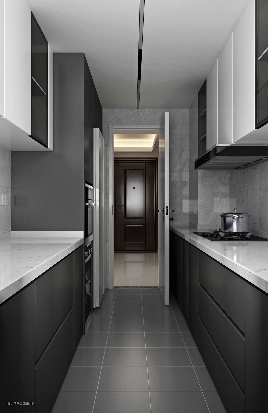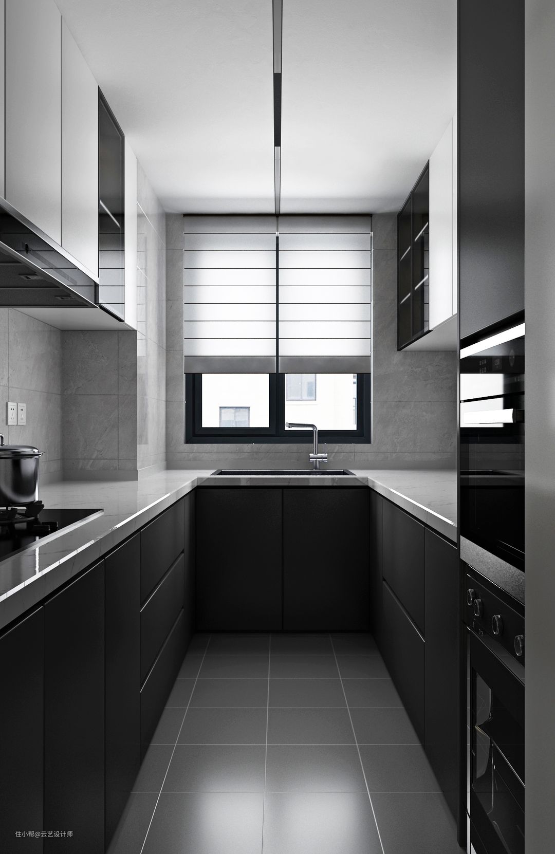 ▲▲厨房的颜色以黑白为主色调,灰色为过度色,空间构造简单整洁,易打扫。