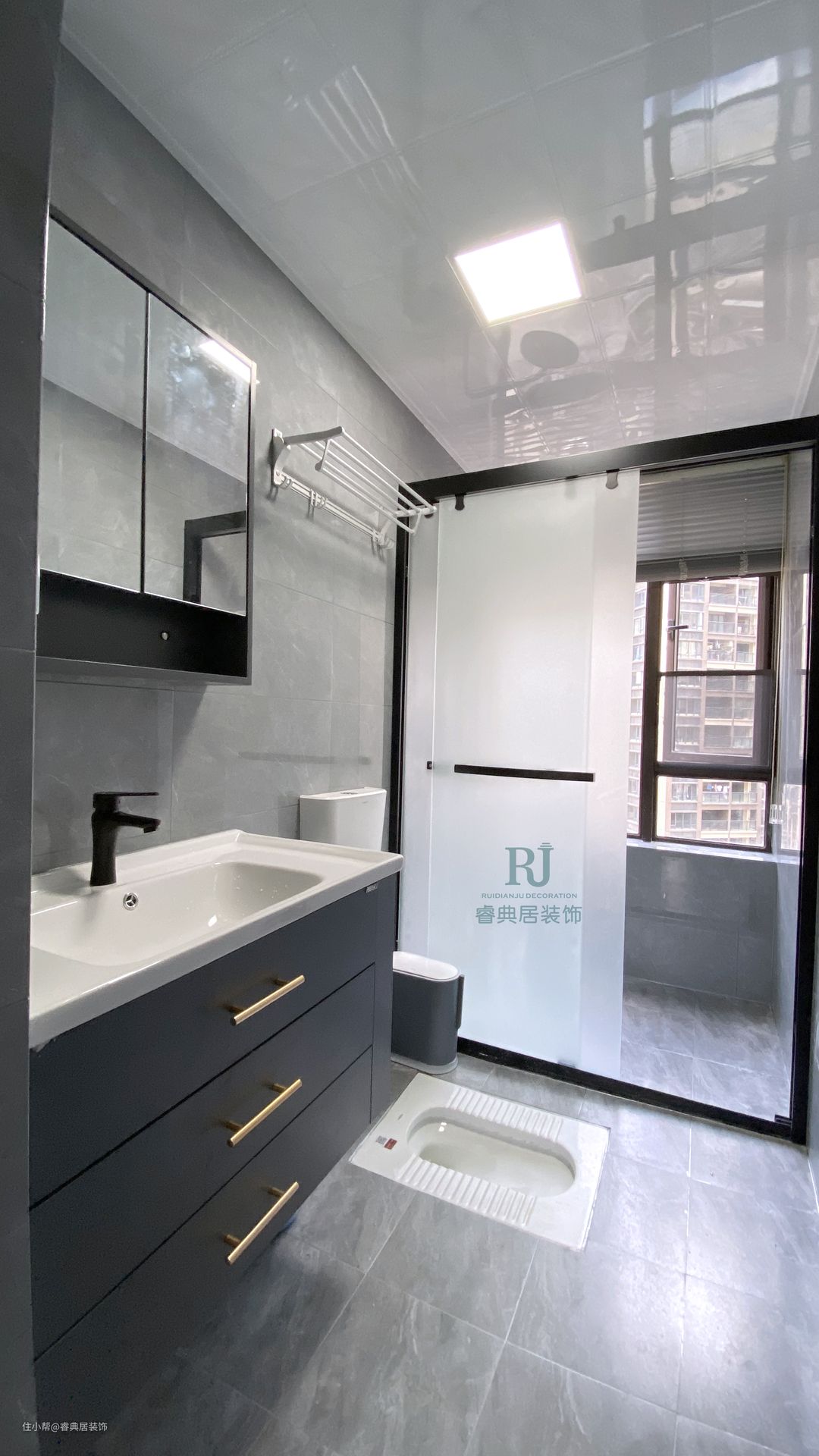 灰色卫生间,很有肌理感,搭配很有艺术气息的洗手台,所以看上去的感觉并不会显得特别死板,给人的感觉很纯净自然也不乏现代时尚质感。