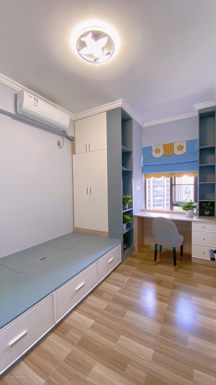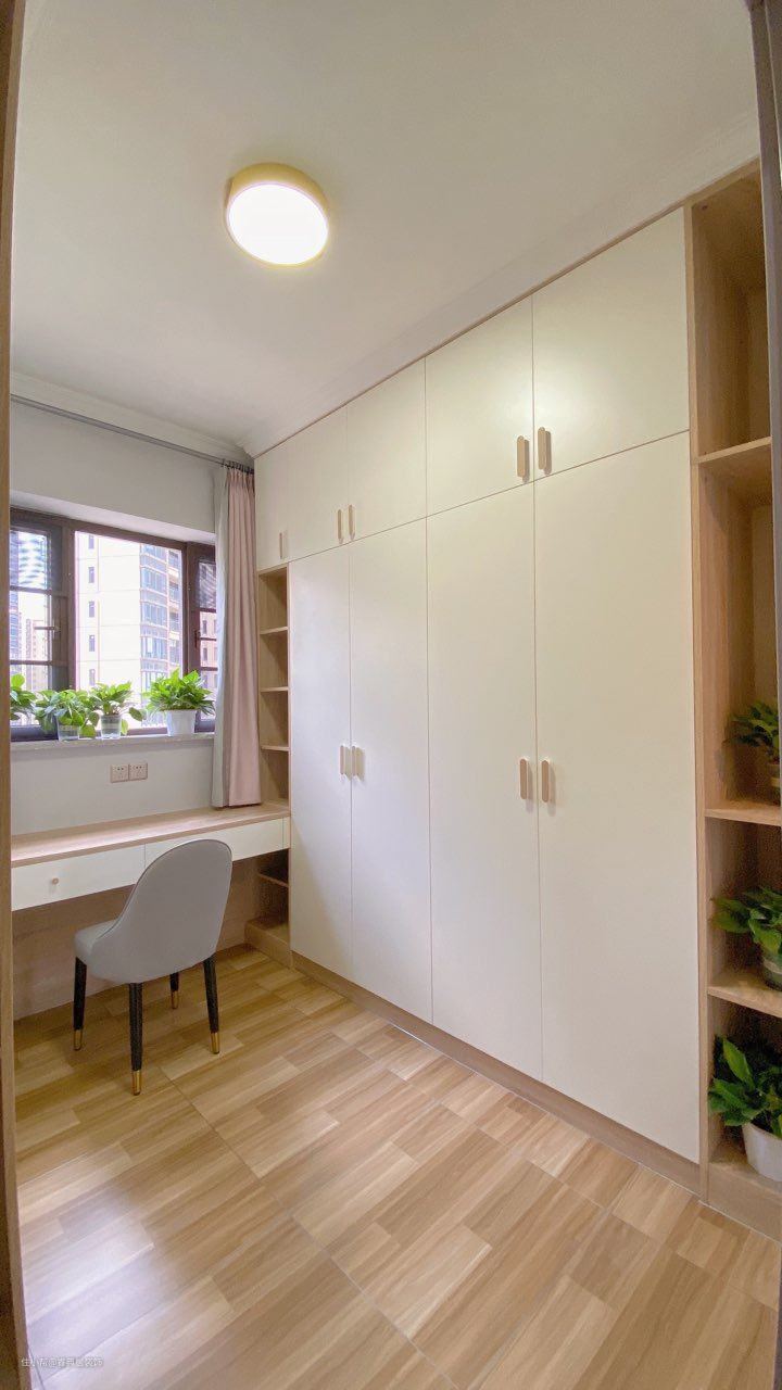 卧室主色调是原木色,搭配一点点灰色,这简直就是绝配,含蓄内敛而且很耐看。这个案例表现出独特的调性,原木色的地板,建材与色彩间有着极佳的调和效果,也更有层次,勾勒出随性住宅主张。