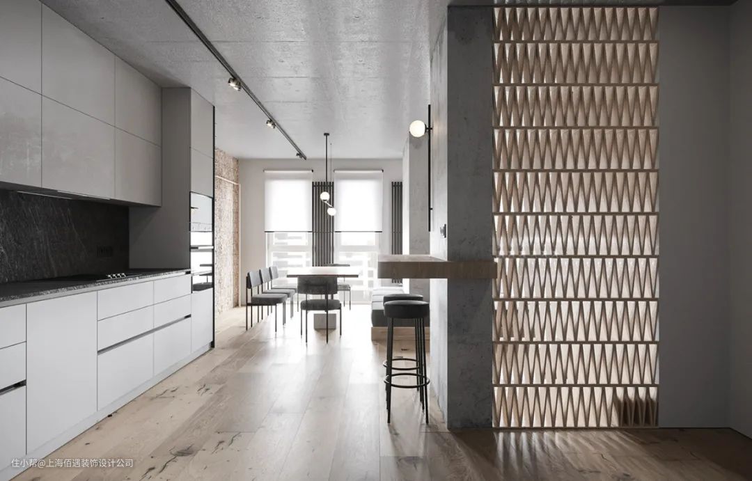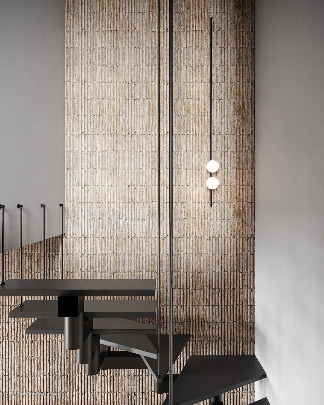 ▲整个空间在材质上的使用都非常大胆,除了最常见的木质地板外,整墙还铺贴了砖块 ,略显斑驳的色彩与打磨过的棱角展现出原始的本真魅力。