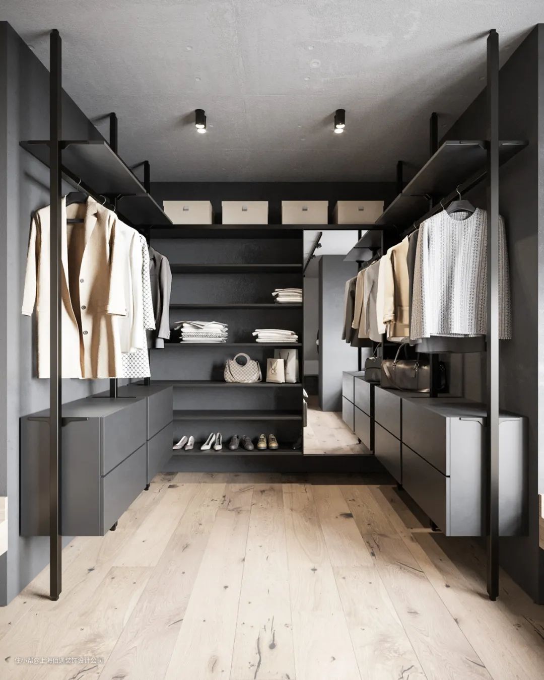 ▲主卧定制了衣帽间,设计师做了敞开式的柜体处理,让所有衣物可以一览无余,方便寻找。