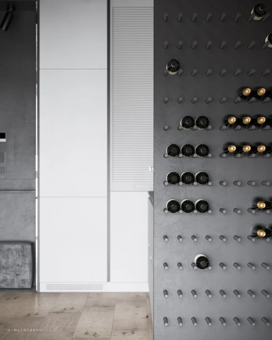 ▲入口的两侧都定制了储物柜,用来收纳进出门的衣物以及咖啡机,在色彩上深与浅的对比十分鲜明,以此拉开整个空间对立却又相融的平衡感。