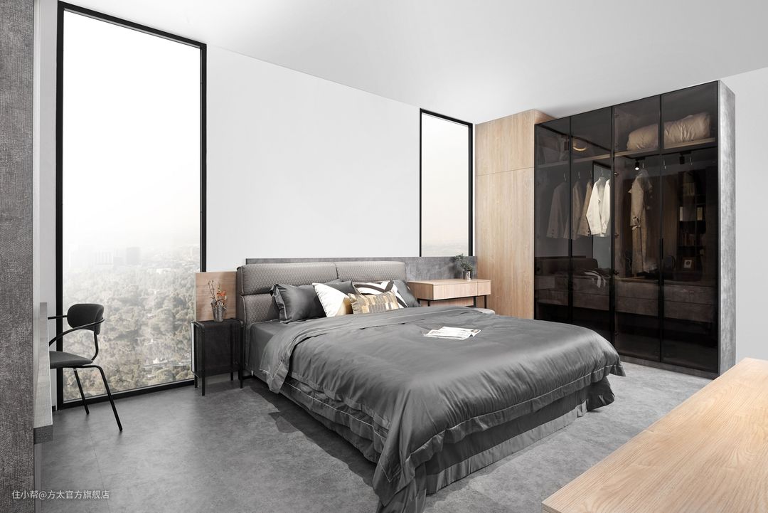 ▲推荐「I-LOFT」,主打灰色系的卧室中,通透的玻璃衣柜门给予了温柔的一面,呈现出现代工业风之下的柔性关怀。