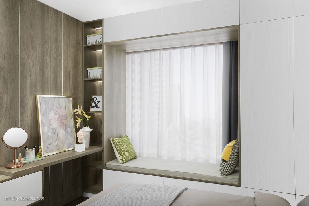 ▲推荐「拾光」,向墙面要空间,飘窗柜的一边通过开放格的形式完美衔接梳妆台,另一边贴近床头打造双开门高柜,顶部和底部同样设计柜体,储物空间转化率Max,整体设计结构对称,美观又整洁。