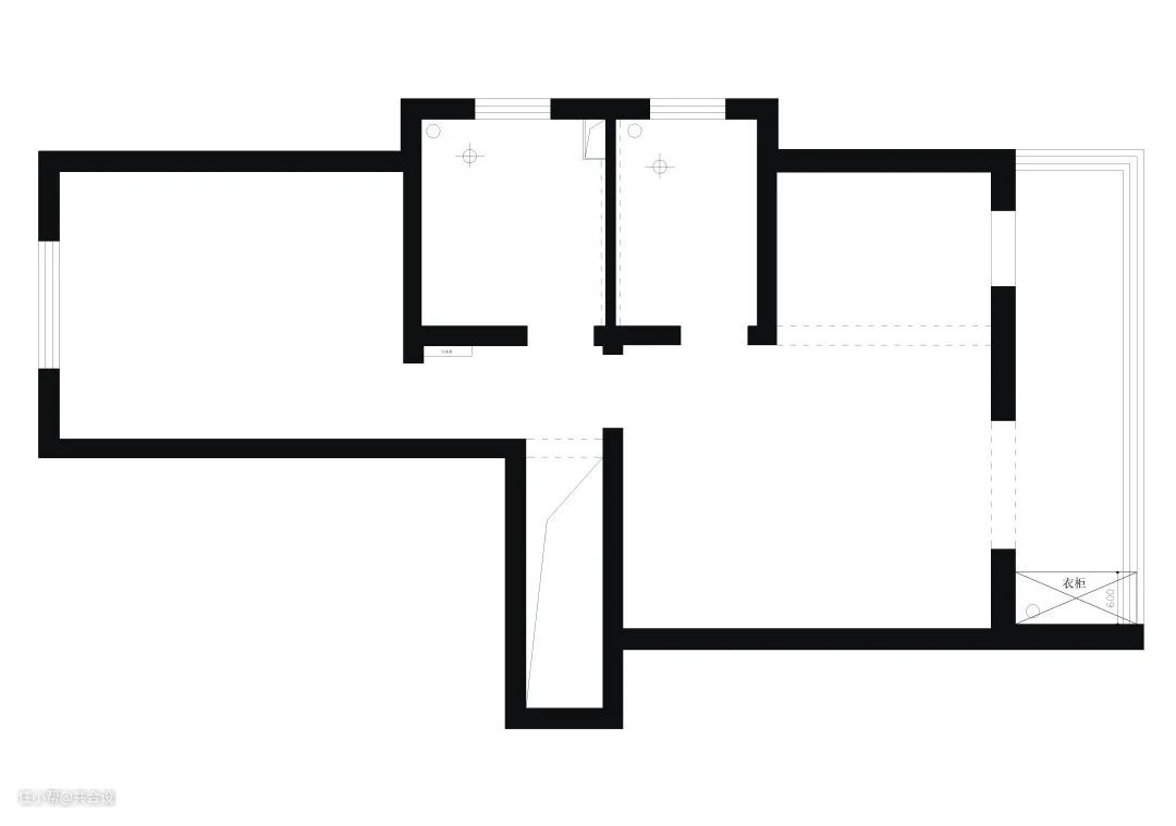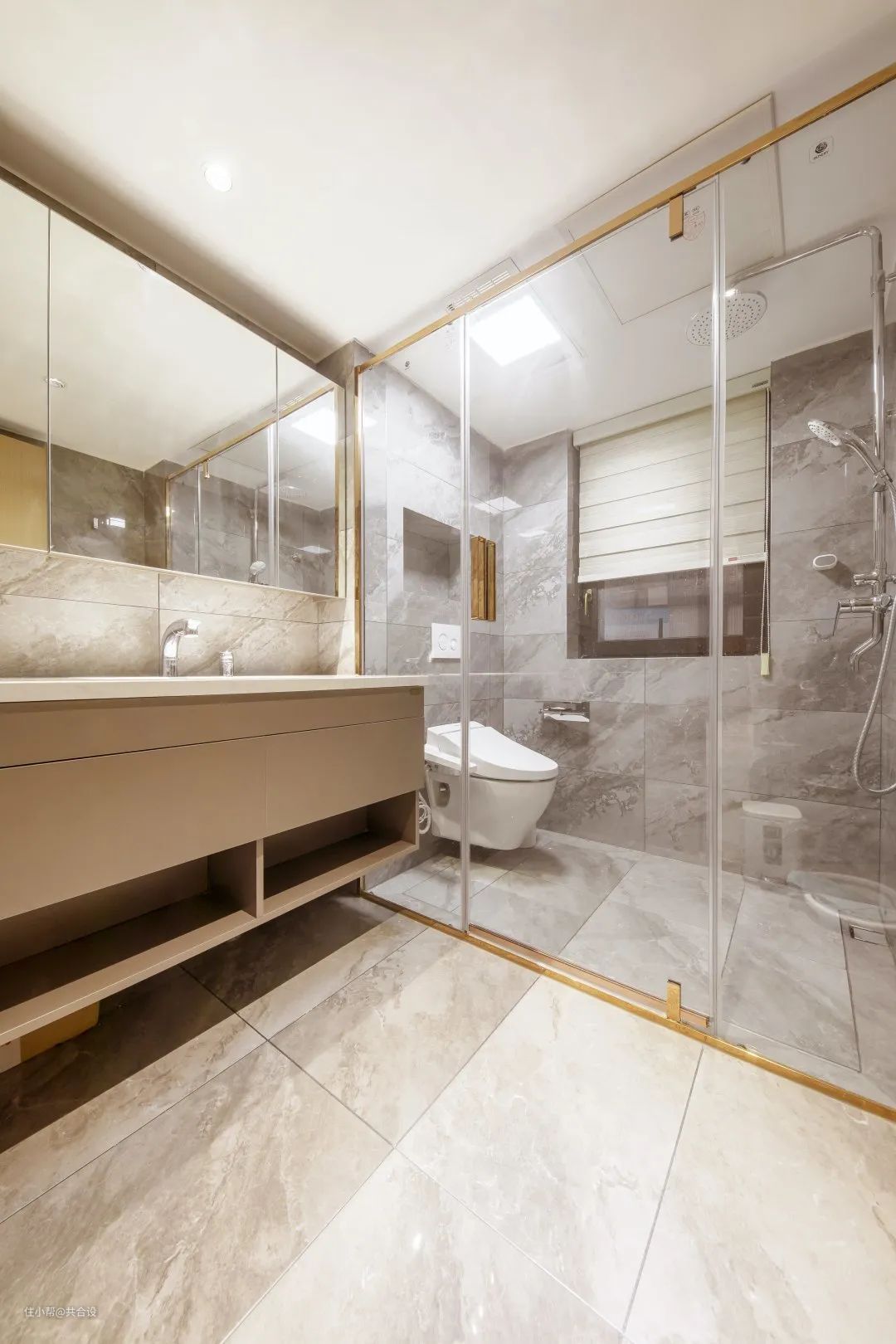 二层原始结构是两个卫生间,在空间上重复,设计师将两个卫生间进行合并,做成干湿分离。