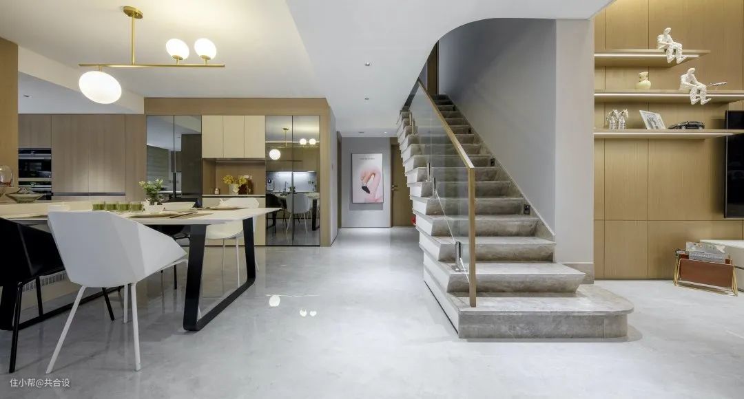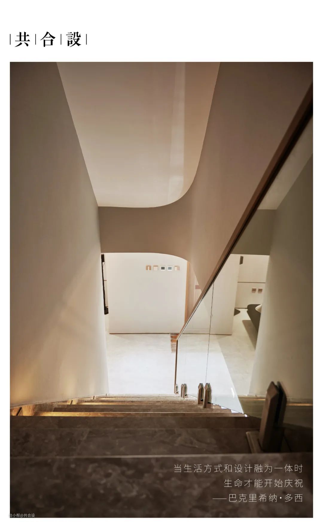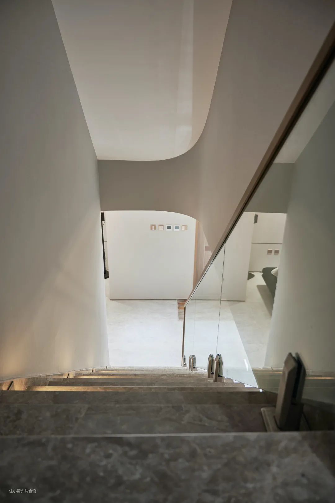 设计师王云河:首先,我们对视觉中心的楼梯进行了重新设计,让楼梯变成钢琴键,营造大音希声、大爱无言的情感表达, 是无声胜有声的美的意境。