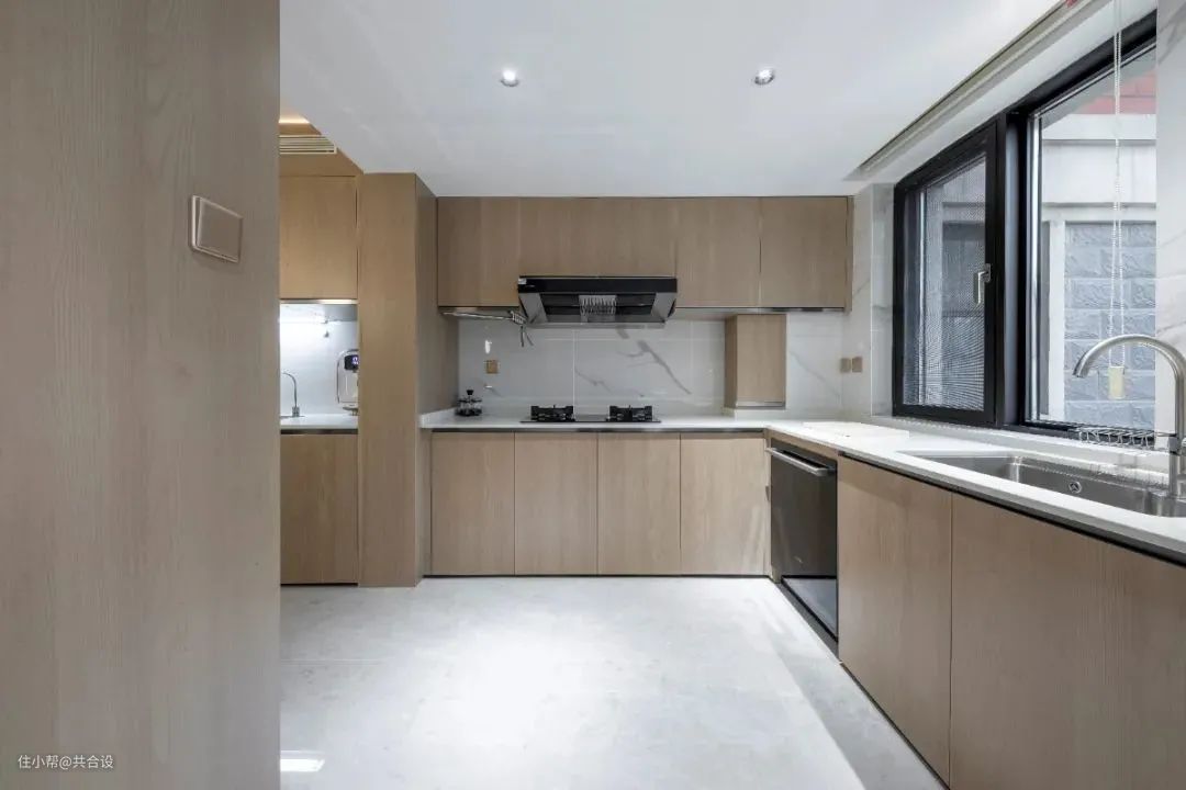设计师高超的收纳术像是一个隐秘技能,让这个空间内所有的物品都有合理的位置不会造成使用过后空间的凌乱。在设计中,设计师充分调研了下厨人的习惯动线及饮食习惯,将厨房操作台、调料区、备菜区都进行了专业的设计。