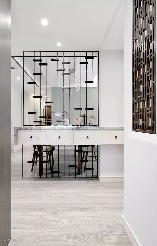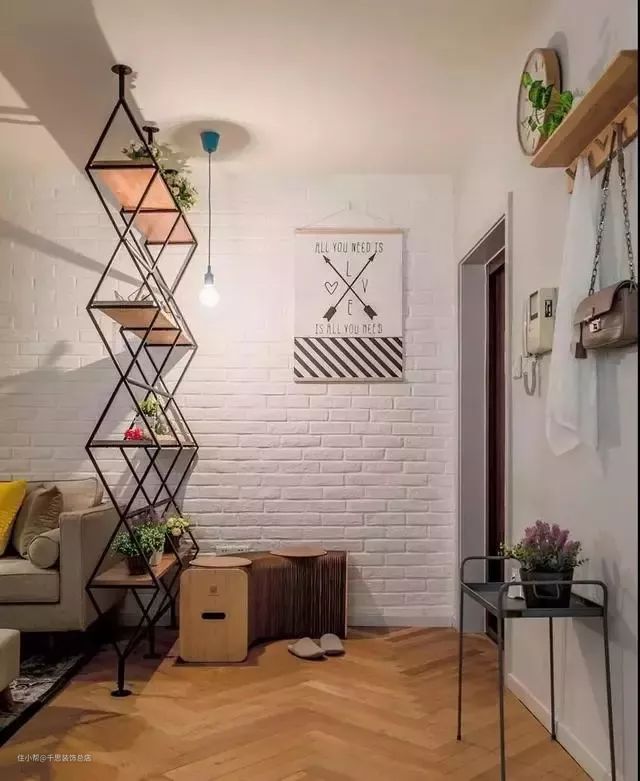 无论是黑框玻璃隔断、木栅栏隔断,还是铁艺隔断,都会让小小的玄关区通透明亮,而且还能起到巧妙的装饰作用噢!