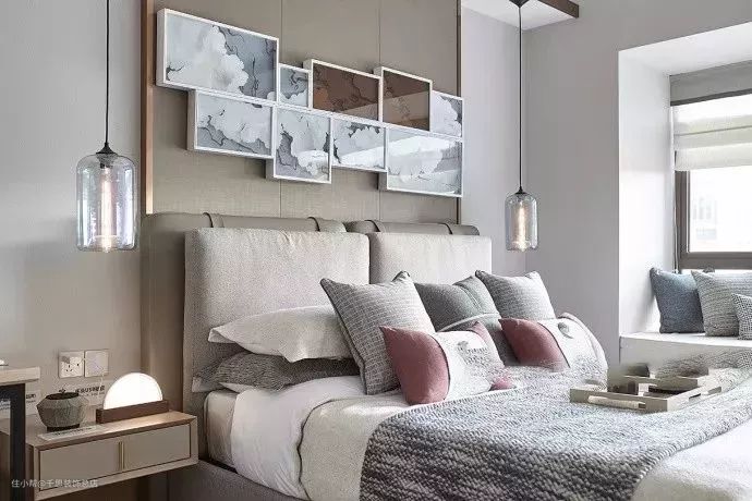 装饰画可以选择抽象或几何图案,题材相同的三联画是不错的选择。色彩应与空间的主体色彩相同或相近,同时色彩不宜过于复杂,最好不要超过三种。如果害怕出错,以黑白灰为主色的装饰画是最佳选择。