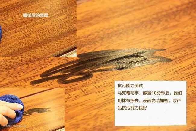 实验结果:两种类型的木板都能够轻易的擦拭掉水性笔的笔渍,方便清洗。