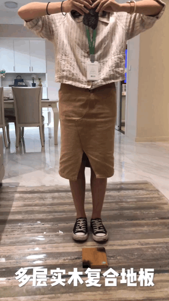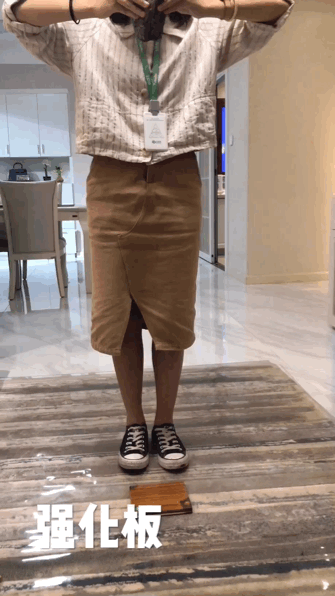 实验结果:多层实木复合地板的凹陷比强化地板深,表明强化板抗摔能力比多层实木复合地板强。
