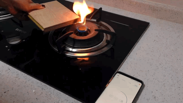 实验方式:两种木板在火上烧30秒,观察两者的损伤程度。
