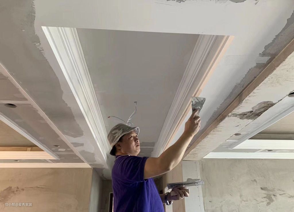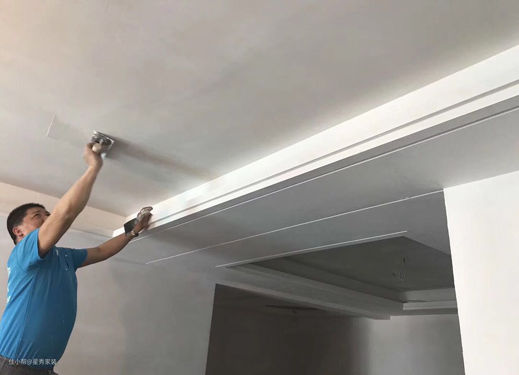 6. 刮腻子处理:一般石膏找平完需要批刮耐水腻子三遍。每一遍十字交叉批刮既可。