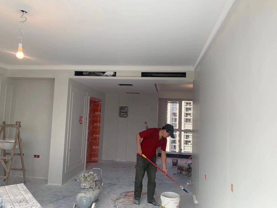 8. 墙顶面刷漆处理:在刷漆之前 需要对墙顶面进行扫灰尘,在涂刷底漆。底漆刷完在检查墙面有没有小眼,有没有做的不到位,在进行修补用800磨砂纸打磨既可。最后在刷两边面漆。淡然我建立顶面跟阴阳角最好不采用涂刷,而是再用喷漆,这样做出来的效果更加美观。墙面我建议不需要喷漆,而是后期难免磕破,为了更好的修复墙面。要是喷漆,修复只能采用喷漆处理,才能达到一致。比较费工费时。