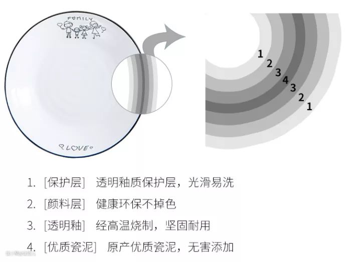 釉上彩的花面会直接接触食物,釉下彩的外层只有釉面……