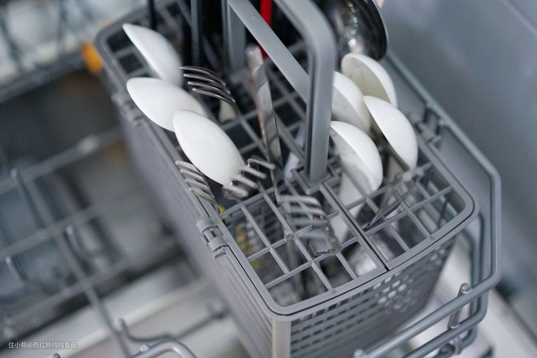 另外如果大家观察足够仔细,应该也已经发现了:这台方太洗碗机的筷篮顶部开孔大小和形状各异,这就使得它在容纳一些不规则手柄刀叉及勺子的时候,会体现出明显的优势 ▲