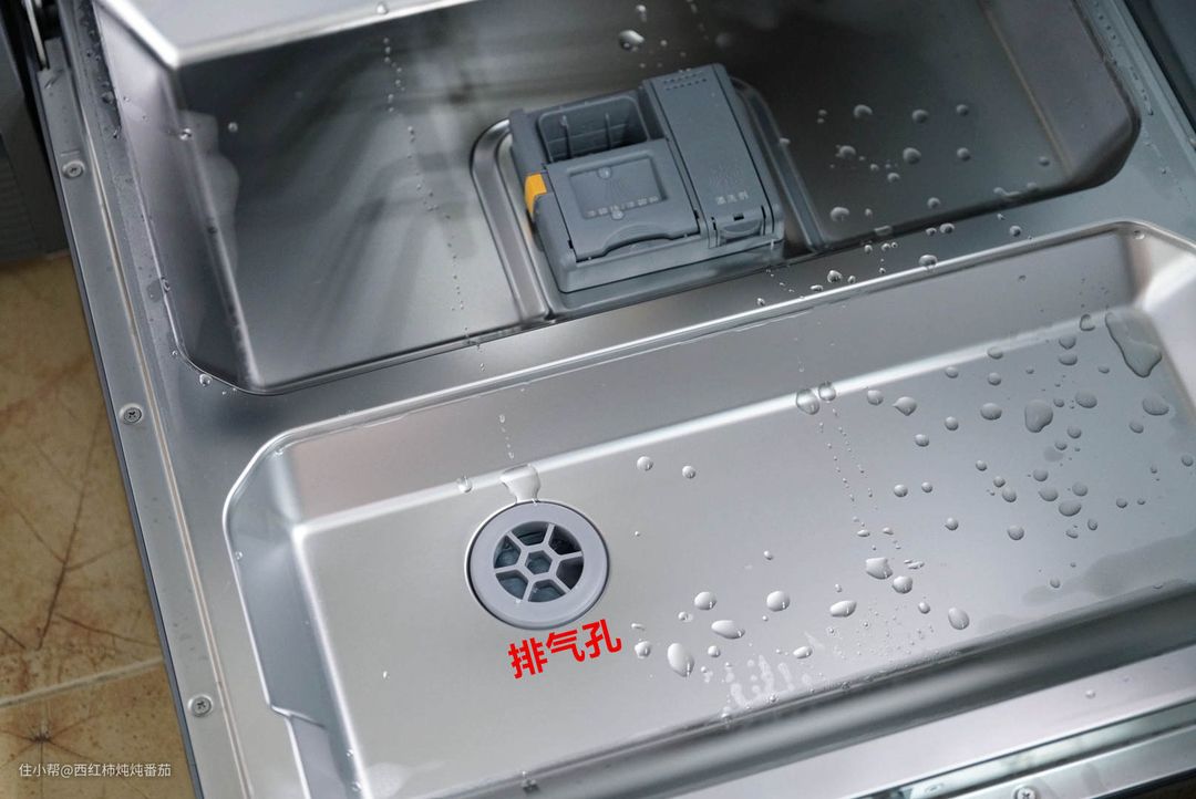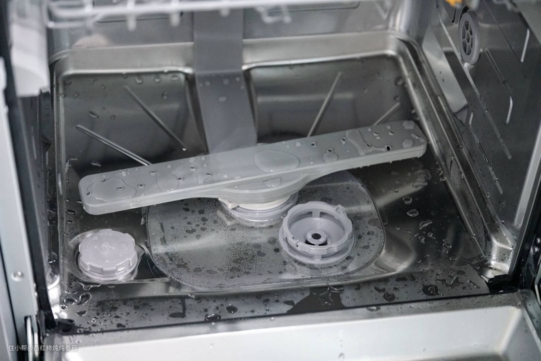 关于碗碟及餐具的烘干效果,其实楼主已经在“洗净测试”部分同步做了展示,这里就再补一张图,展示一下烘干后洗碗机完全干燥的内壁,烘干非常彻底 ▲
