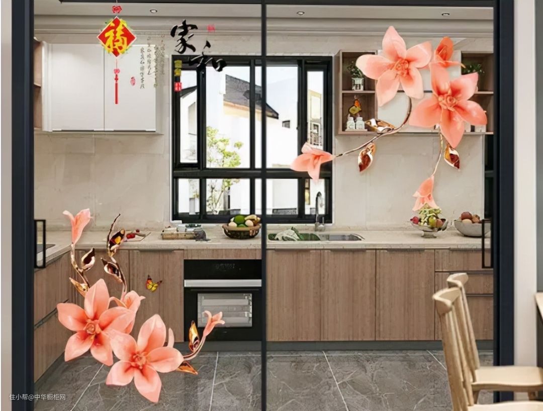 家家都有玻璃推拉门,有些是安装到阳台,有些是在厨房,我家厨房选择就是玻璃推拉门,只不过我妈装饰了一番,我欣赏不了这种美。