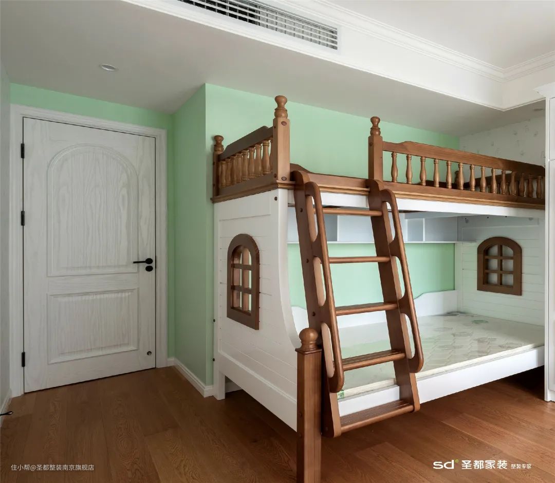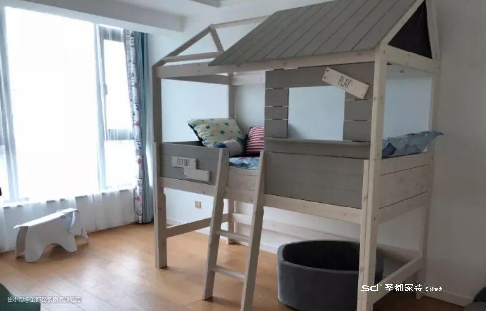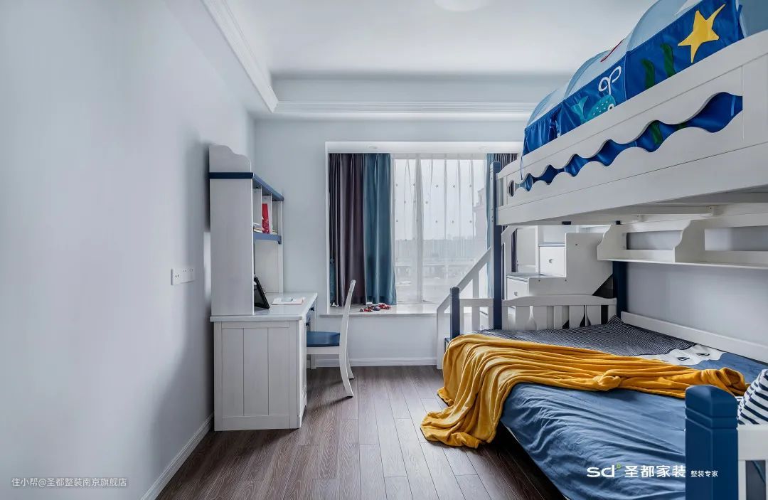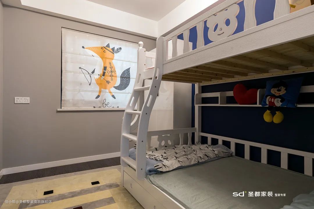 如果家里有两位宝宝,而且性别一致,在户型面积有限的情况下,可以考虑让两位宝宝同住一间,并选择高低床。