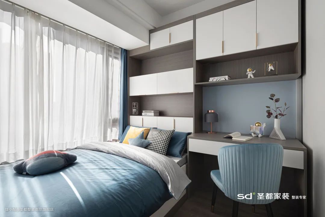12岁以上孩子所需的空间需要大一些,床和书桌也需要按照成人标准来准备。
