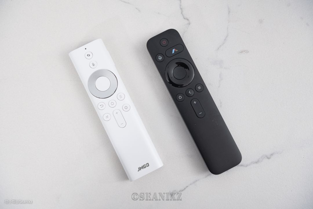 遥控器倒差别不大,峰米的更加简单,符合我们日常使用各类电视盒子的习惯,不同的是带有一个一键直达的功能,可以一键开启快捷界面。