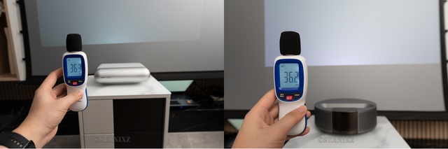 1m距离,坚果O1 36.3dB,峰米R1 36.2dB,几乎静音。