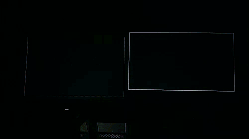 画面中可以看到坚果O1亮度确实低了不少,全黑画面下也出现了像液晶屏幕上那种“漏光”的情况。峰米R1也有,不过这是因为不是菲涅尔屏幕,不同角度幕布反光不均匀的外因导致的。