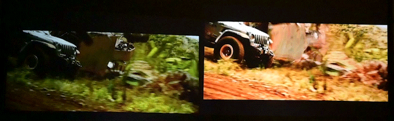 其实你可以看到MEMC处理后的画面中汽车后方树丛运动方向和速度都有些违和,看起来一顿一顿的,这是MEMC经常出现的计算失误,环境越复错误越多,不过大部分用户是感受不到差别的。