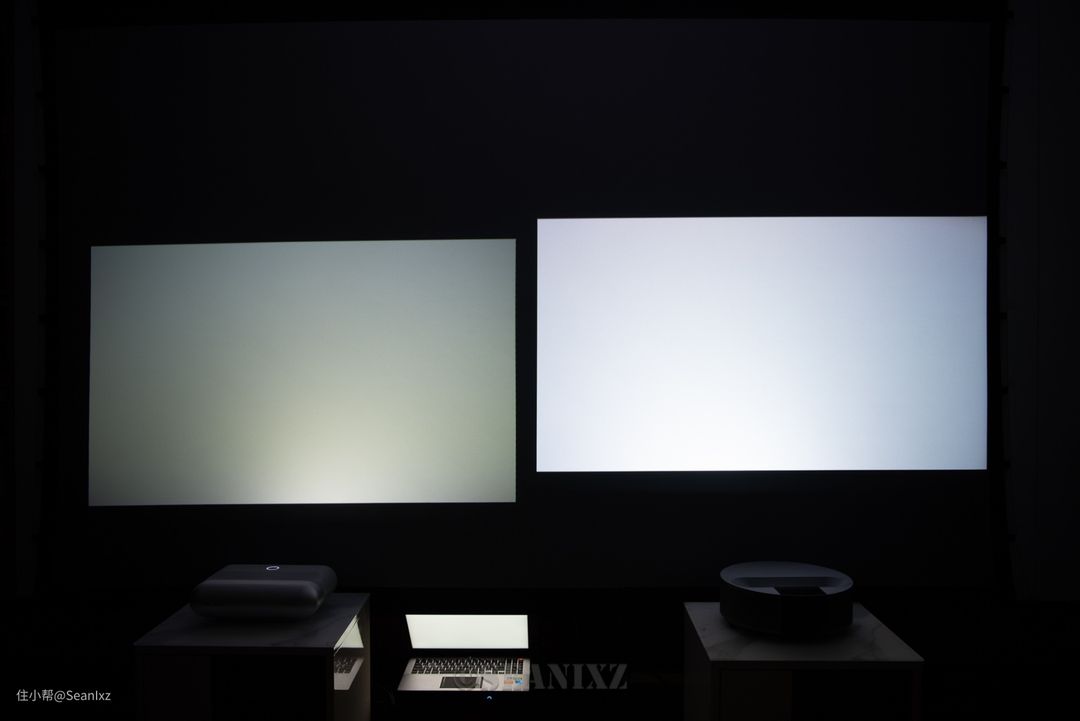 二者定位都是超短焦,投射距离差不多,但效果确实有比较大的差别,这里也晒出来对比一下,希望对大家有帮助。
