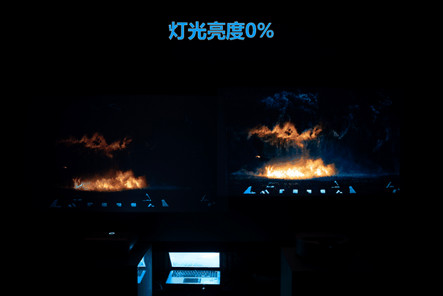 差别还是比较明显的,高亮度意味着更小的环境光控制需求,像峰米R1的表现在白天室内也是可以无压力观影的,甚至还能打开一点环境光,避免画面全黑切换的时候全黑和全亮造成的刺激。