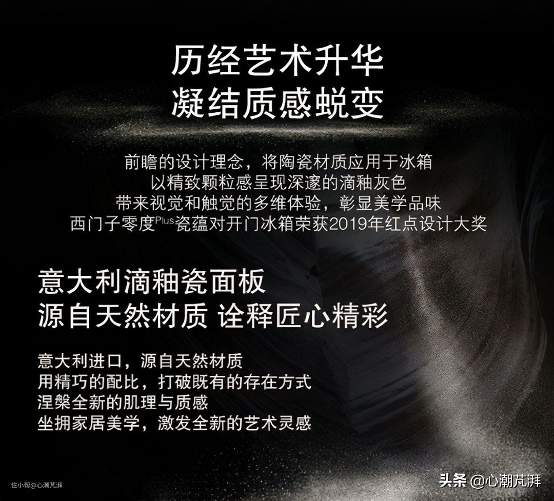 陶瓷面板,耐磨耐刮、硬度拉满,且每一款陶瓷面板都有自己独特的纹理。这样一款特殊面板的冰箱,既内敛沉稳,又极具个性,不失时代感,翻译成人话——低调奢华,土豪无情。