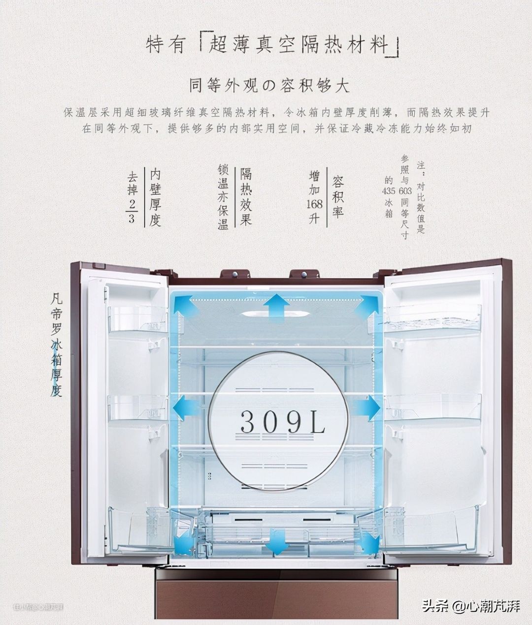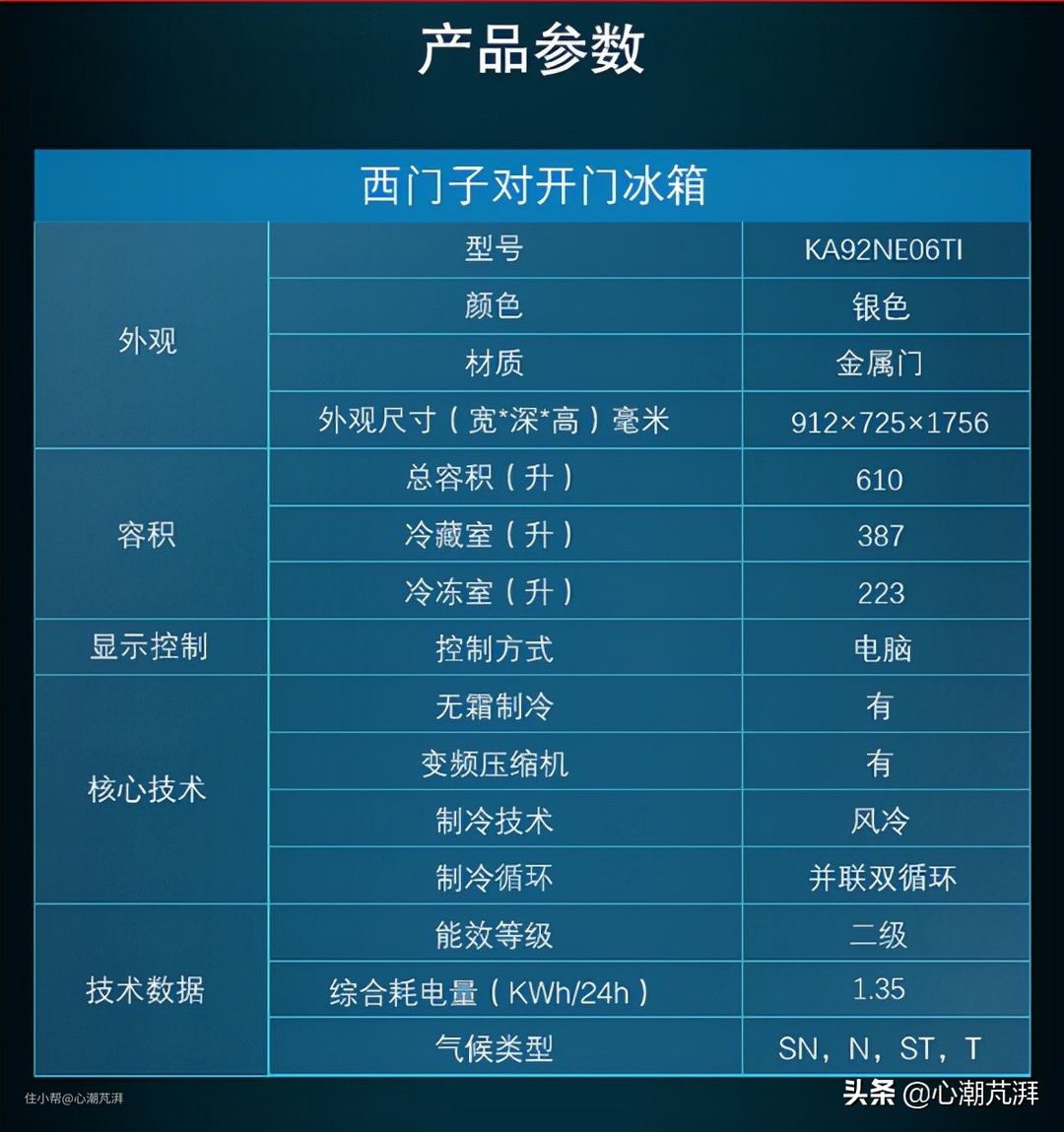 品品这个产品参数,超大容量、并联双循环、深度只700多一点,典型的宽薄型“胖子”。米白色外观百搭,价格也不是特别高,可以说近乎完美。