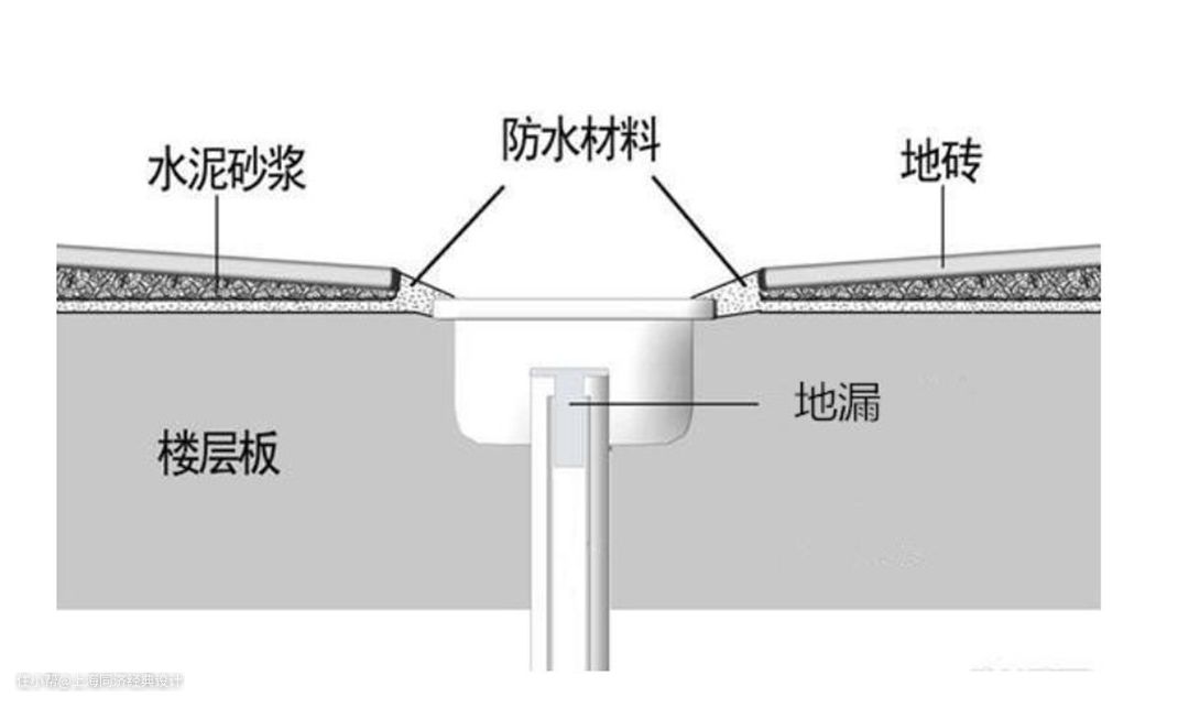 同时说一下卫生间的坡度问题。瓷砖墙压地工艺和墙角弧形找平工艺都是能辅助整体防水层“长治久安”的辅助工艺,对于卫生间尤其是淋浴房地面有效防水排水的工艺其实是地面坡度处理。如上图所示,有经验的泥工能很好地处理卫生间地面找平,给到一个合理标准的地面微倾斜度,既让你感觉不到,又能有效给地面积水通过地砖迅速导流到地漏位置。迅速这个关键词就显得非常重要了,因为只有迅速导流,才能尽可能地减少地面积水的量和存留时间,也最大限度得减少流水渗透到水泥砂浆层下面的防水涂布层,减少防水层压力提升使用年限。