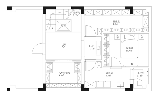 2. 将原本的L型楼梯改成U型,中间的位置留给电梯,楼梯步数的增加会让上楼的幅度变缓。