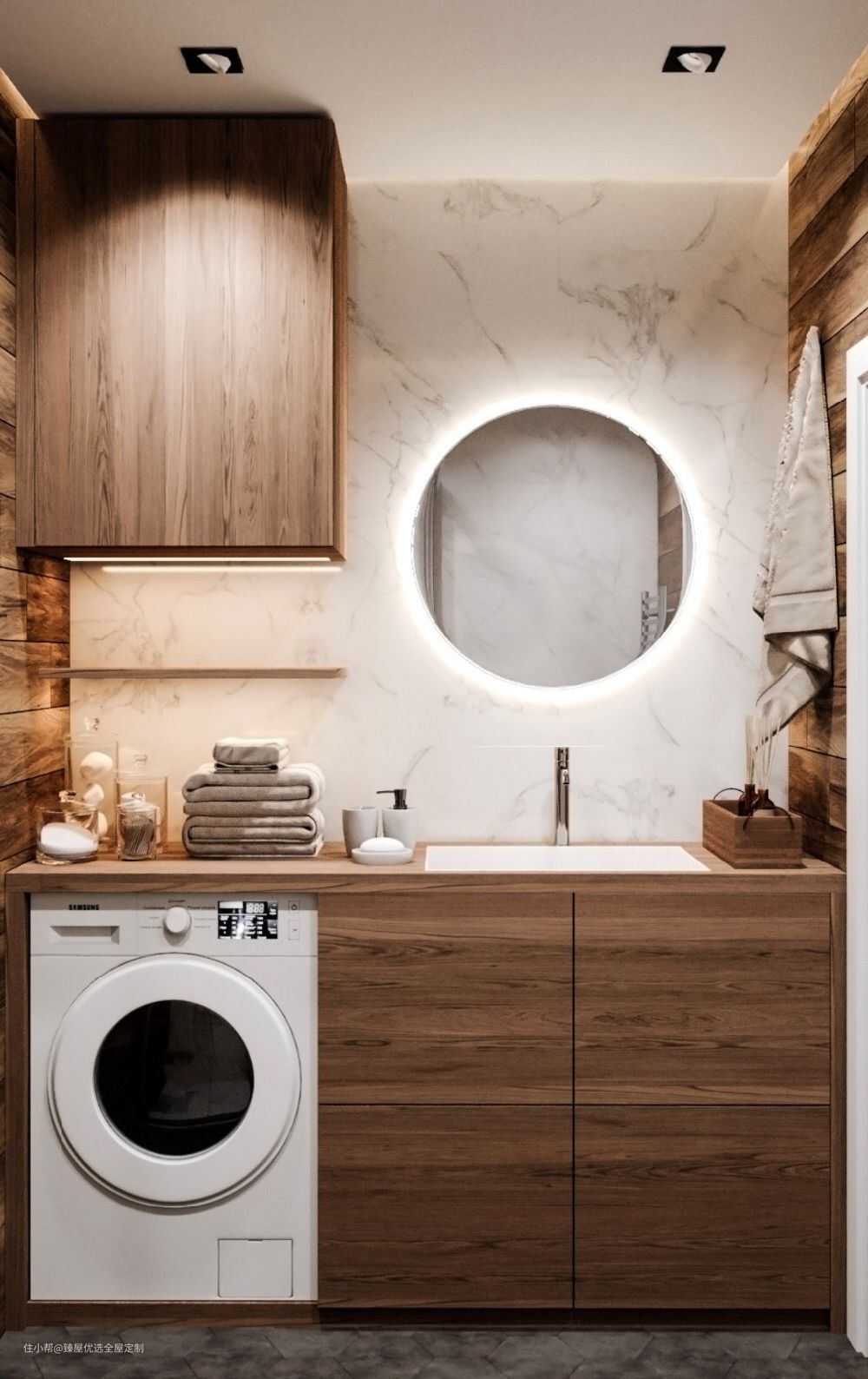 除了上述的基础洗衣机外,还有些朋友会配备迷你洗衣机、烘干机、分区洗衣机等等。这些空间都是需要考虑进来的,所以我们要充分考虑到空间整体是否能够容纳得下。