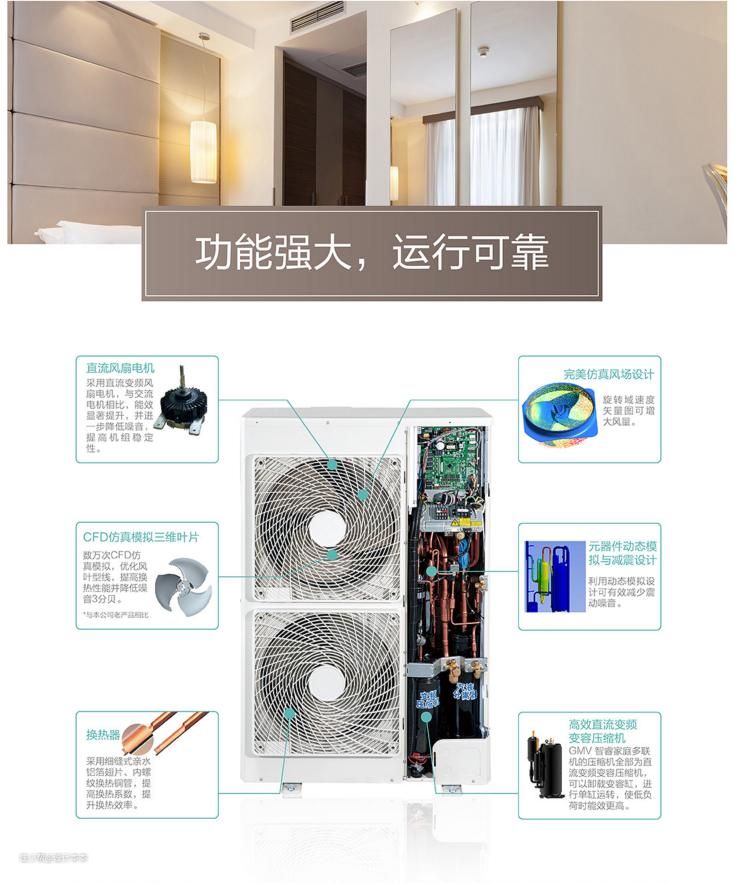 核心技术——格力独家变频变容技术、一级能效;低负荷能效高,能效比普通中央空调提升130%,经过国家压缩机制冷设备质量监督检查中心第三方权威测试,节能达到60%,用电直接省一半。