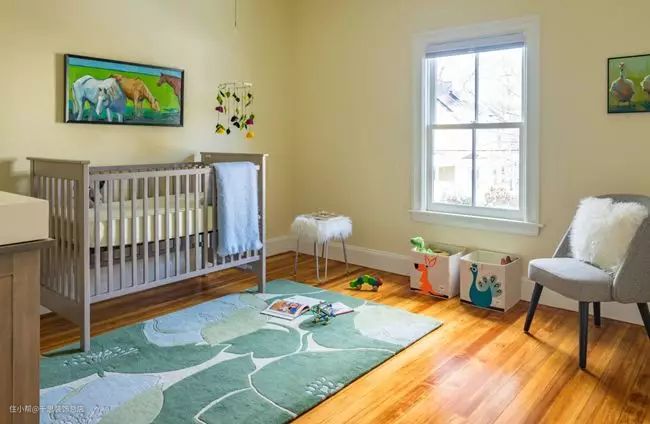 一般小婴儿都是跟爸妈一起睡,所以儿童房的目的是为了让孩子玩耍、学爬行。所以一个软软的爬行垫是必须的,同时注意做好安全措施,避开尖锐家居。另外,安装一面镜子,可以让小宝宝认识自己哦!