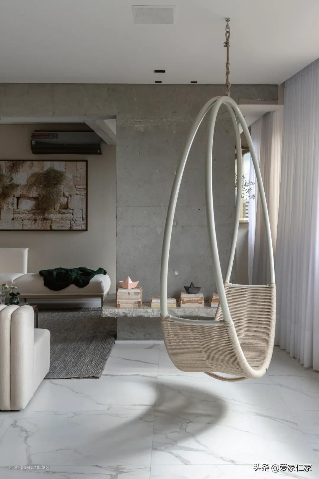 阳台边上还有一张藤编的休闲吊椅,悠闲的午后躺在这里,享受阳光的照射,十分惬意。